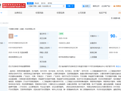 天眼查App显示,近日,千里智行网联(成都)科技有限公司成立,法定代表人为王军,注册资本1.5亿人民币,经营范围包括人工智能基础软件开发、人工智能应用软件开发、网络与信息安全软件开发等,由千里科技(60177
