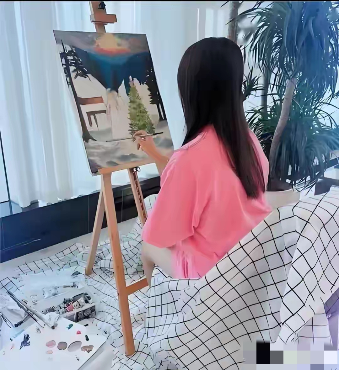 李湘并没有让她走“明星”路线,而是选择让她系统学习绘画、艺术史与色彩构图。