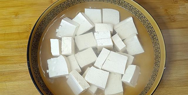 (1)这道菜老豆腐和嫩豆腐都可以,但是切完后要用开水泡或者盐水泡都可以,用以去除豆腥味。