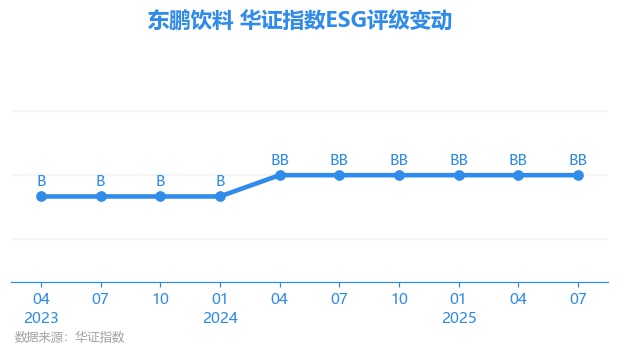 日前,华证指数公布了新一期(2025年7月31日)的ESG评级结果,东鹏饮料(605499.SH)获得BB评级(华证指数评级为C起至AAA九档,C为最低档,AAA为其最高一级评级/AA为其第二档),上一期(2025年4月30日)ESG评级为BB。本期ESG