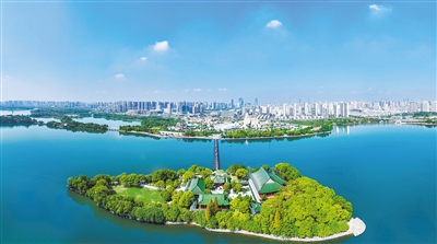 一座浮桥,将岛与岸轻轻连接,将过去和现代联通。仁者乐山,智者乐水,万顷碧波中央,绿树掩映的湖心岛上,这方沿袭八百年书香的雅苑,于热闹的城市中,辟出了一方宁静致远的天地。这等深邃的智慧,透露出这座城市的清新品格。