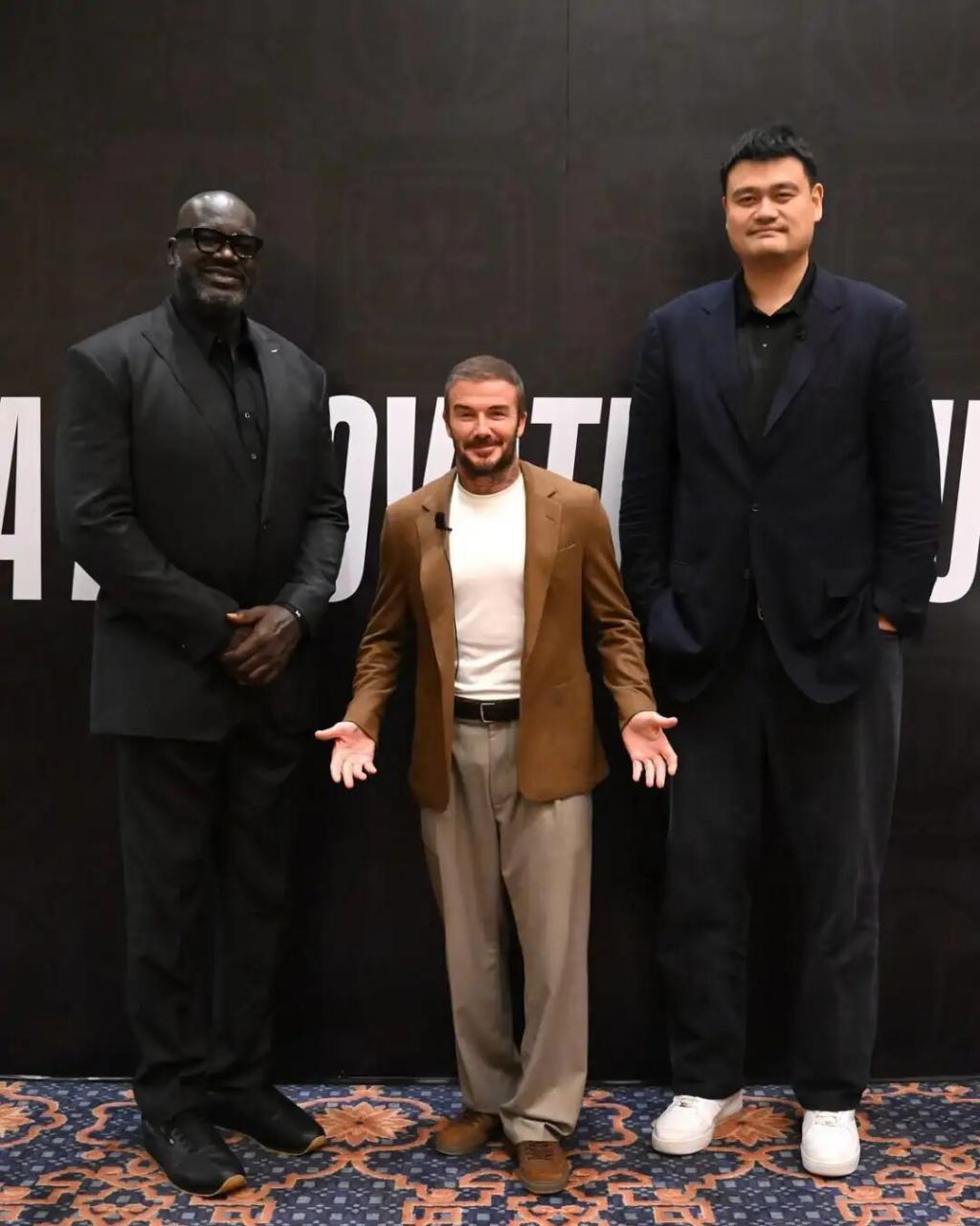 范主说:松弛穿搭密码 要说这两天名人浓度最高的地方,必须是NBA中国赛! 刚在巴黎看完时装周、去伦敦参加完贝嫂纪录片首映的小贝,就火速闪现澳门,晒出跟姚明、奥尼尔的同框,被衬托得超娇小,摊手仿佛在说: