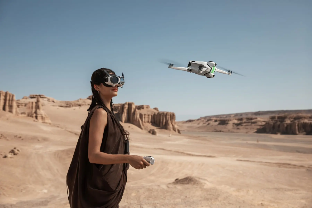 A1随附一副头部追踪眼镜和一个经重新设计可单手使用的控制器。这意味着飞手可以获得他们喜欢的任意方向的无人机视角,创造更沉浸的体验。由于A1仅重249克,美国及大多数其他市场的买家无需持有无人机操作执照即可飞行。