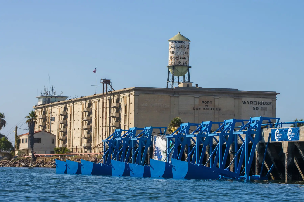 去年9月,Eco Wave Power在美国洛杉矶港启动了美国首个波浪发电项目,通过在浮标、码头等现有海洋结构上安装浮子,将波浪上下运动产生的压力流体输送至陆地转换装置发电。