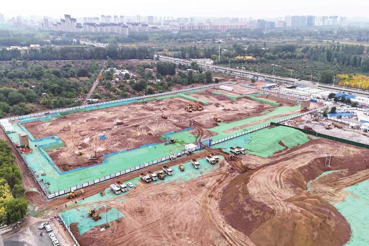 金凤区城中村改造拆除新建专项债项目(凤合苑)一标段、二标段工程正在加紧施工(10月9日摄)。
