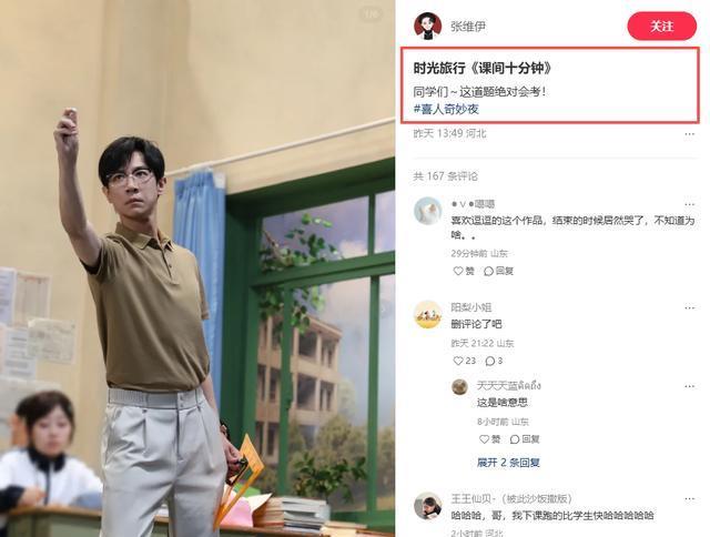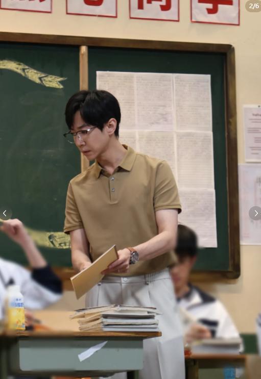 但这次的造型设计可谓是小心机满满,特意避开“喜剧咖”的固有标签,瞄准“知性人夫”赛道,教室场景、历史书道具都是精心设计的“去油武器”。