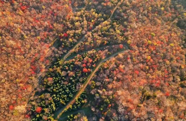 当秋风漫过白山市江源区仙人谷,整座山谷便成了自然挥洒的油画。枫叶褪去绿意,染作明艳胭脂红,与坚守墨绿的松柏相映,勾勒出层次分明的底色。(图片由白山市江源区宣传部提供)