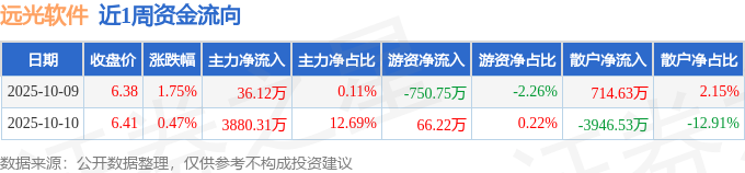 本周盘点(10.9-10.10):远光软件周涨2.23%,主力资金合计净流入3916.43万元