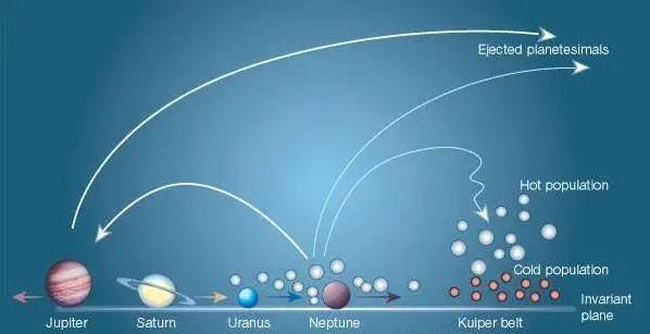 海王星的故事也很精彩。它可能不是一开始就住那么远,而是从离太阳近的地方搬过去的。太阳系刚形成时,有个巨大的“冰石圆盘”,里面全是小行星和冰块。海王星跟木星、土星、天王星一起往外迁,路上把这些小家伙踢得到处跑,有的进了柯伊伯带,有的飞到更远的奥尔特云。莫尔斯-索姆努斯就是被海王星“赶”到现在的家。