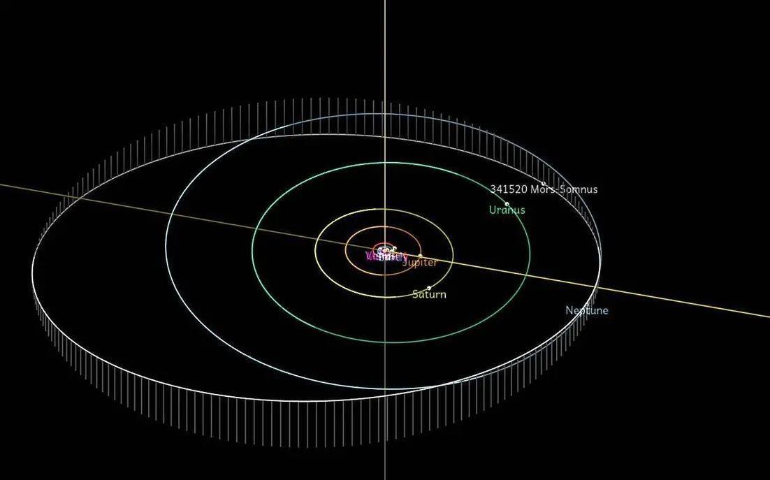 莫尔斯-索姆努斯是柯伊伯带的“居民”,那里住着一堆叫“外海王星天体”的家伙,简称TNOs。现在已经编号的有3000多个,还有一大群没被发现的。它们都在海王星轨道外面晃悠,有的跟海王星“共舞”,有的跑得老远,轨道比海王星还远30个天文单位。莫尔斯-索姆努斯属于“冥族小天体”,跟冥王星算是远房亲戚,轨道长得有点像。