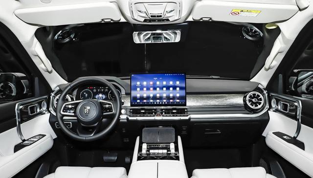 进入车内,也是一个机甲风的感觉,中控台这边也是取消了之前的挡把设计,改成了怀挡式,所以中间部分是配上了一排功能按键,像越野、空调等调节都能轻松实现,12.3英寸全液晶仪表加上15.6英寸中控大屏,操作起来也是非常的丝滑,并且配有四驱的语音识别。其次还配有小冰箱。来到后排,它同样是配有15.6寸娱乐屏的,并且座椅乘坐起来也是非常的舒适。