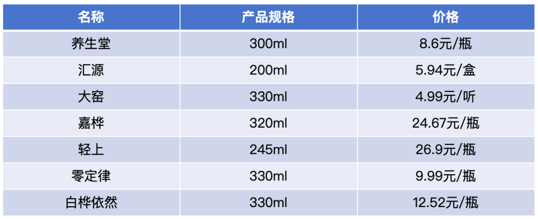 (市面上部份热门白桦树汁产品统计,来源:AgeClub)