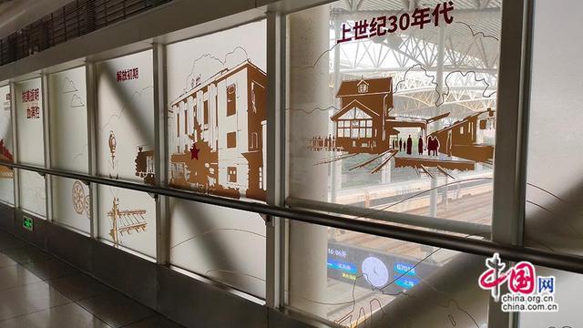2025年10月12日,连通常州站南北广场的廊道展示铁路常州站发展历程。刘帅 摄