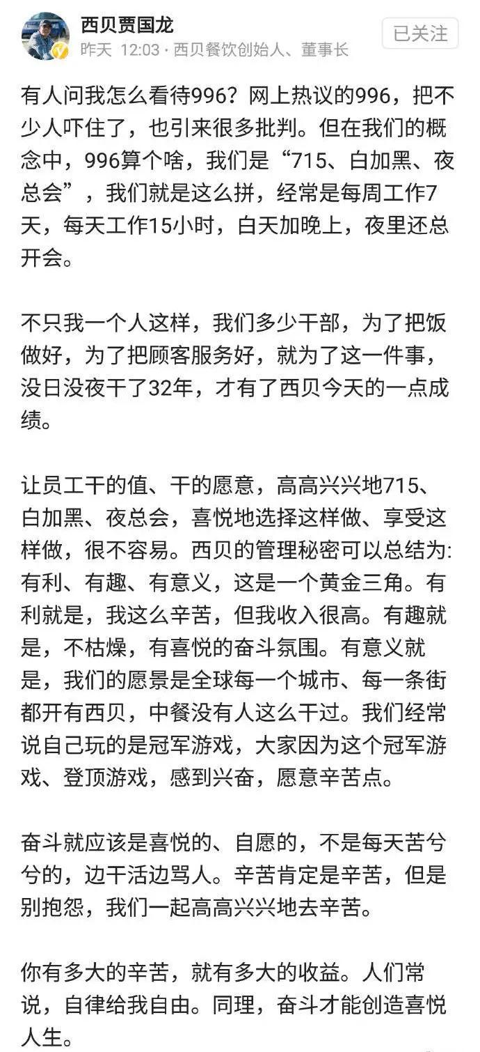 这场舆论风暴的源头,是西贝官方公众号“西贝品味早读”发布的一篇文章。