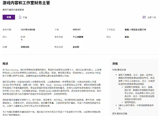 此外,Xbox还正在招募一名游戏内容和工作室财务主管。该职位将直接与Xbox各个部门(Activision、Blizzard、King等工作室)的首席财务官合作,“为所有游戏工作室提供整体视角,推动各组织的财务流程和系统的整合。”