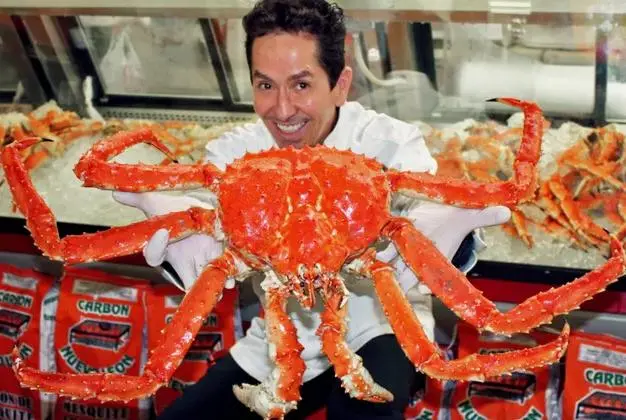 帝王蟹原产于北太平洋的冷水海域,具体包括日本海、鄂霍次克海至白令海一带,以及美国阿拉斯加至俄罗斯勘察加半岛的北太平洋两岸地区。它们在原产地基本上算得上是根本没有对手,这得益于算上脚最高1.5米的体长、布满棘刺的坚硬外壳和超强的繁殖力。