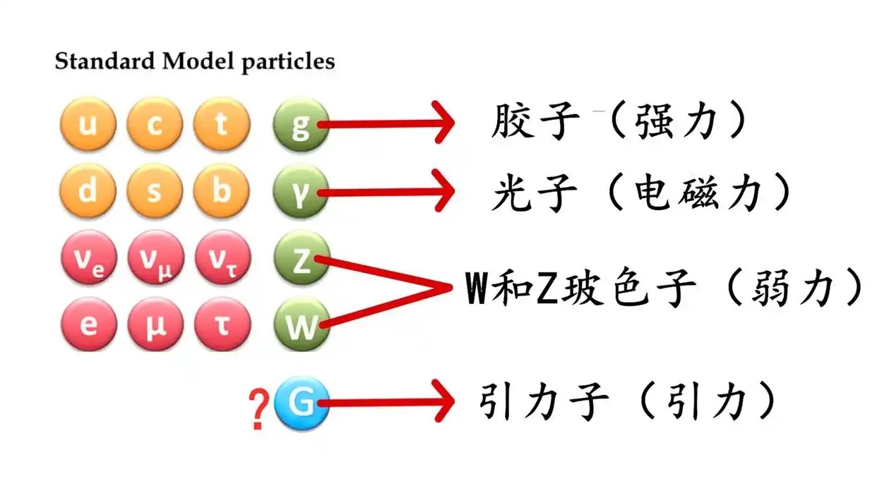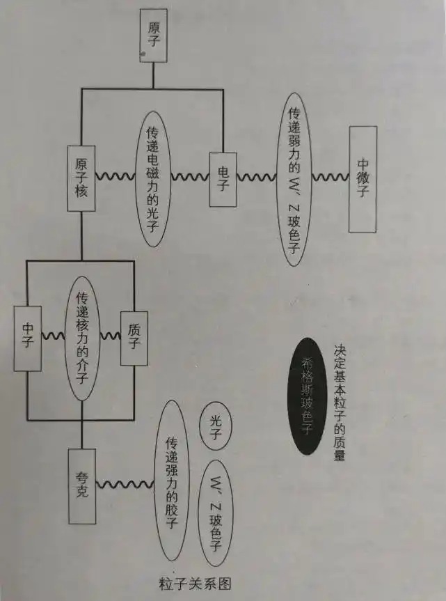 也就是说,四种规范玻色子如同胶水一样,将各种费米子粘结在一起,四种基本作用力也正是通过它们来传递的。不过,需要注意的是,引力子目前还只是一个假设的概念,尚未找到其存在的证据。具体而言,质子和中子等核子通过胶子传递强相互作用(强力),从而粘结在一起形成原子核;而原子核和电子则通过光子传递电磁力,进而构成原子。