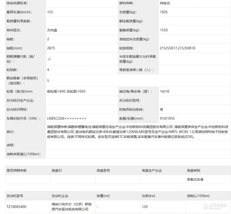 动力系统方面,极狐S3采用单电机驱动布局,搭载海纳川浩夫尔生产的 TZ180XS480 型驱动电机,额定功率45kW,峰值功率150kW,储能装置选用中创新航提供的磷酸铁锂蓄电池。