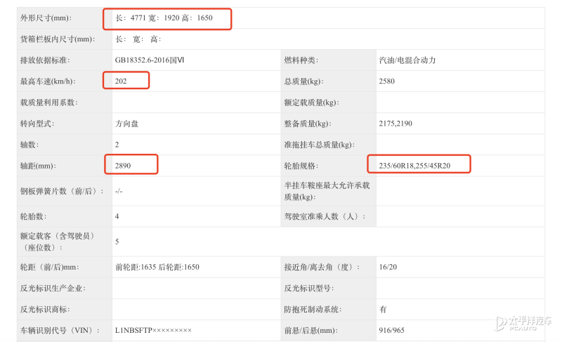 ​  尾部造型延续前脸设计语言,同样搭载贯穿式灯组,中央以黑色饰板连接,后尾门轮廓与车牌框区域形成独特造型特征。车身尺寸方面,新车长宽高为4840/1900/1480mm,轴距达2875mm。​
