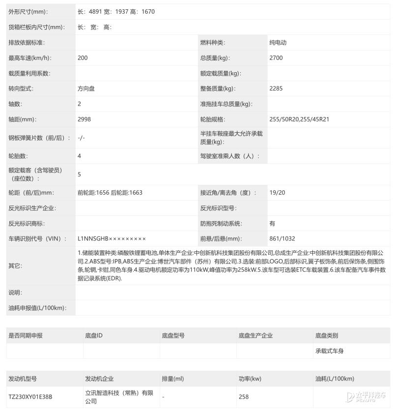 动力方面,从申报信息方面看出与现款保持了一致,后驱车型采用258kW单电机,四驱车型则继续采用165kW+258kW的前后双电机。