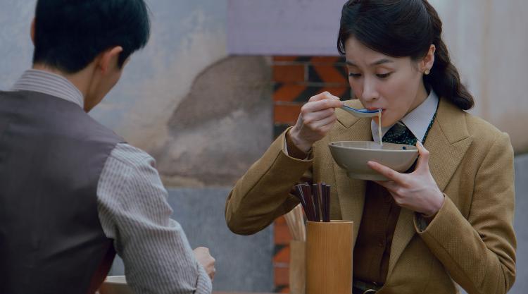 没有任何的表演痕迹,但就像是现实中跟同事吃饭聊天一样,动作相当自然。
