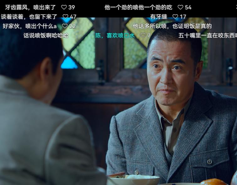 至于对面的陈宝仓,情绪比较激动,一张嘴说话就容易喷饭,看得观众忍俊不禁,却也能感受到演员赋予人物的性格。