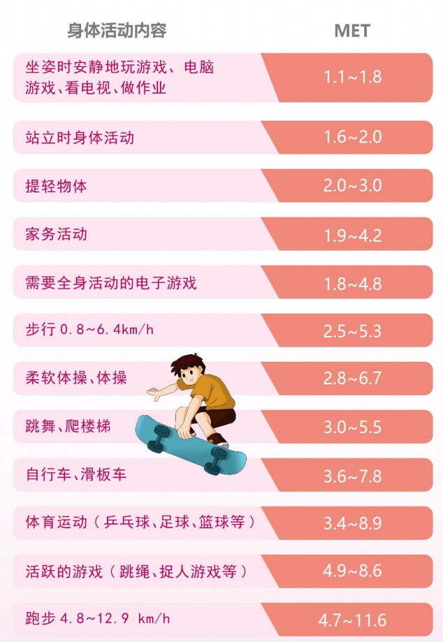 常见儿童青少年不同身体活动与相应的代谢当量对照表↓↓↓