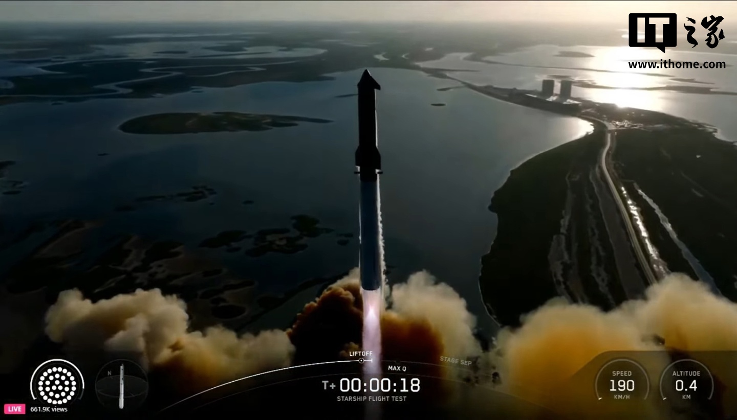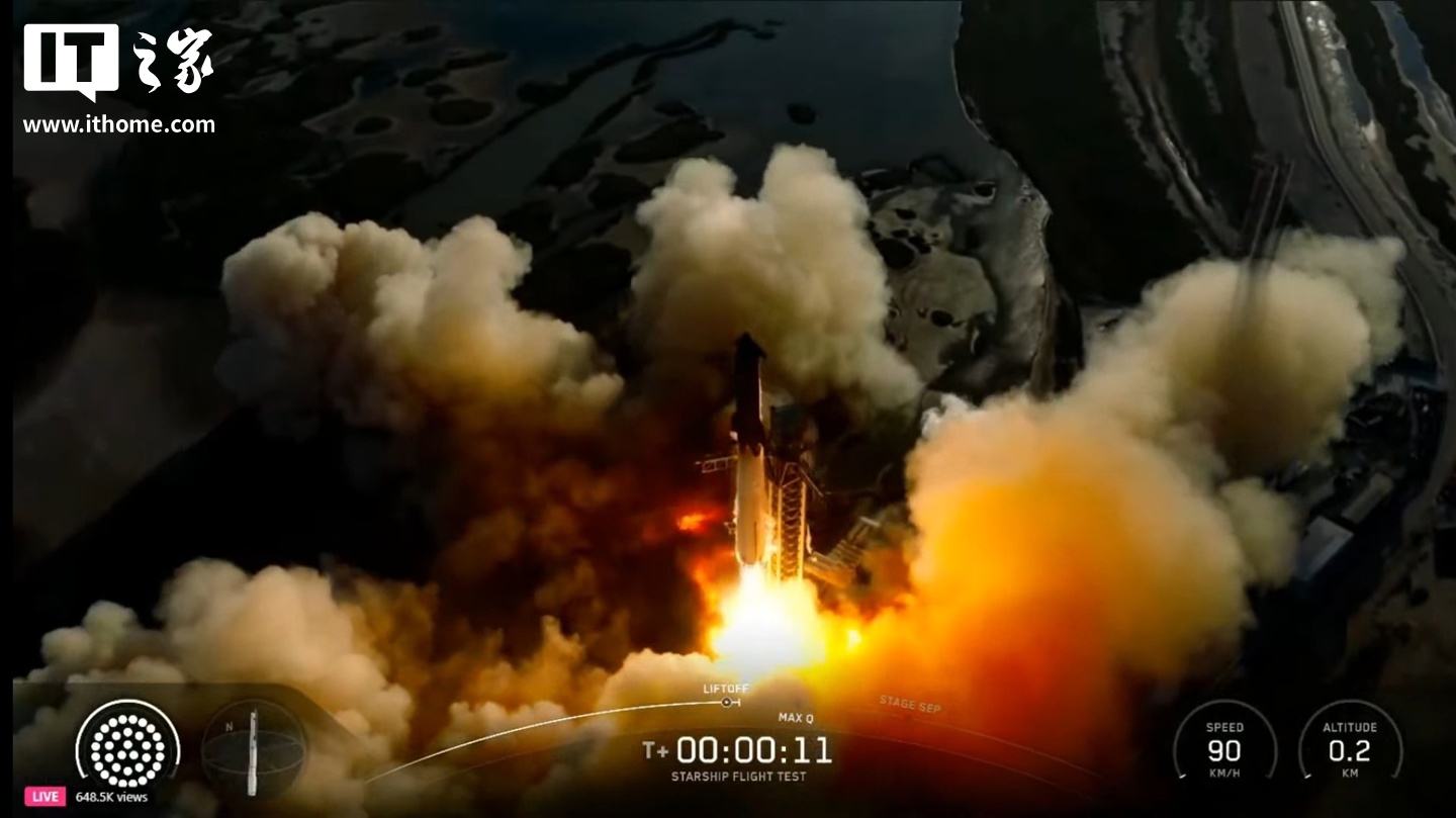 IT之家 10 月 14 日消息,SpaceX 新一代重型运载火箭“星舰”于美国中部时间 13 日 18 时 23 分(IT之家注:北京时间 14 日 7 时 23 分)从得克萨斯州发射升空,最后成功完成星舰第十一次试飞。此次任务对助推器新型着陆燃烧方案、飞船返航轨迹、飞船隔热系统耐受性等关键技术进行了实验和验证。火箭助推器落入墨西哥湾附近海域,不返回发射场回收。飞船最终在印度洋溅落。
