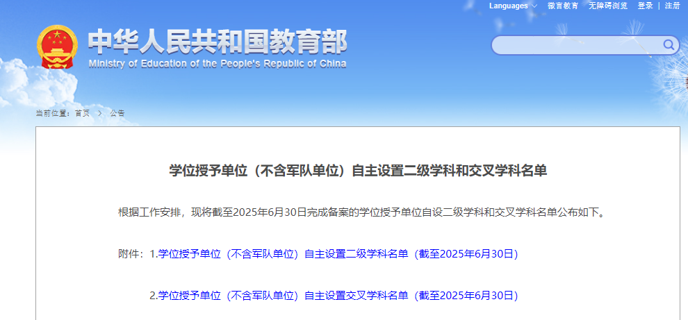 学位授予单位(不含军队单位) 自主设置二级学科名单(截至2025年6月30日)