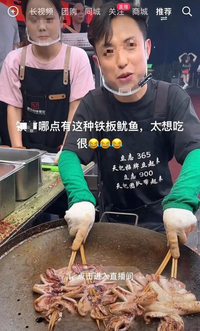 比如有摊主一边在制作食物,一边在对着几个高音开播的手机支架大喊“宝宝们”。