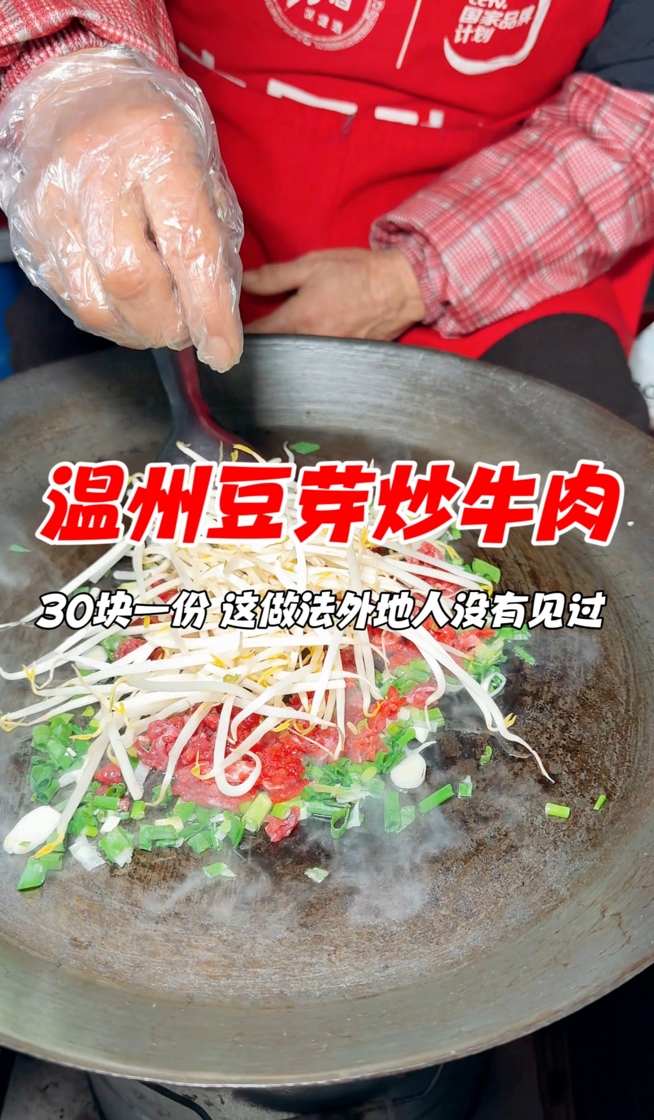 还有最近火爆的“街头豆芽炒牛肉”,一大把小葱和更大一把的豆芽,再加上2两牛肉末,就卖到了30元。