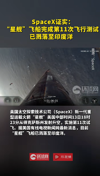 美“星舰”第11次试飞成功,SpaceX证实:飞船已溅落至印度洋,马斯克当天“意外现身”