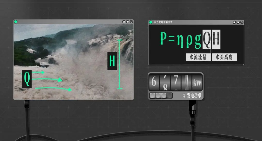 水电站的电力,归根结底来源于水流的势能。想知道一条河到底能发多少电,我们可以用水力发电潜能公式来计算: