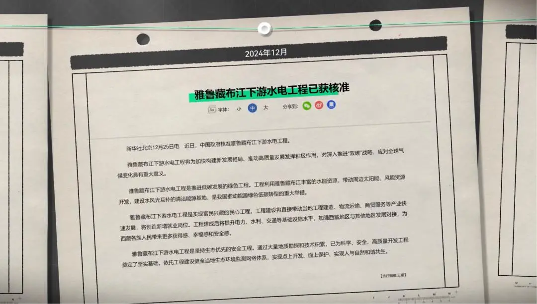 2024 年 12 月,雅鲁藏布江下游水电工程正式获得核准。