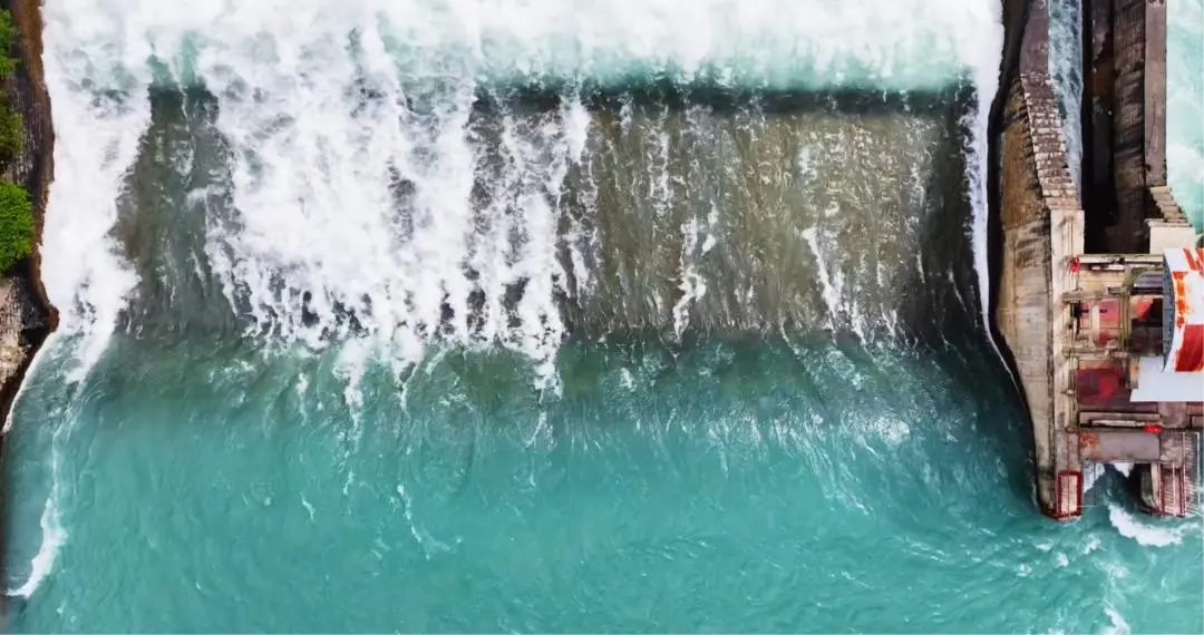 但光是深可不够,通过发电潜能公式我们能够知道,水力发电除了需要很大的落差外,还需要巨大的水流。