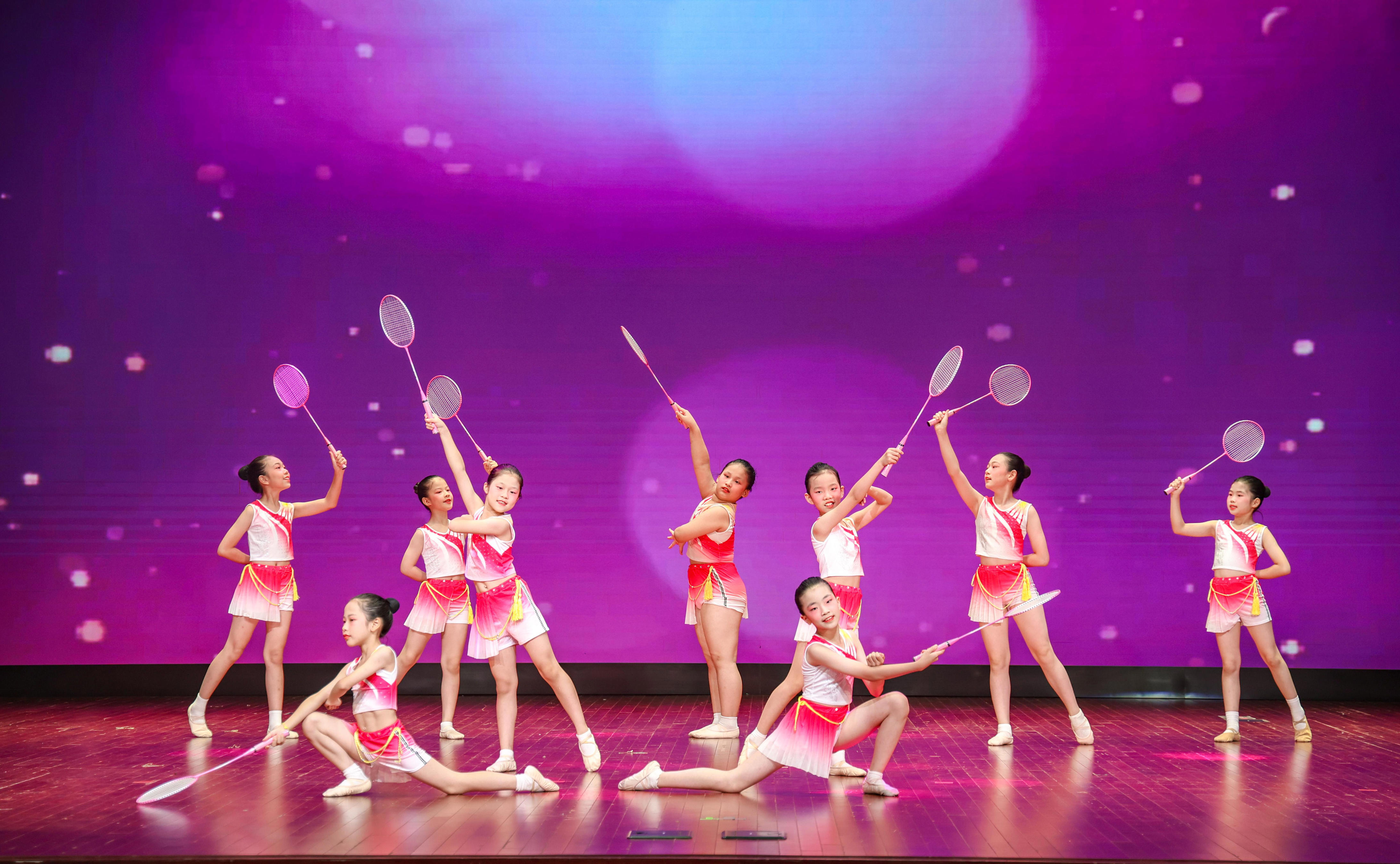 随后,回民小学表演了花式跳绳《绳彩飞扬迎全运》,文德路小学则呈现了羽毛球舞蹈《追梦节拍》,旧部前小学带来一首激昂澎湃的朗诵《体育之歌》……各学校的节目以不同形式,共同诠释了新时代少先队员的活力与风采。