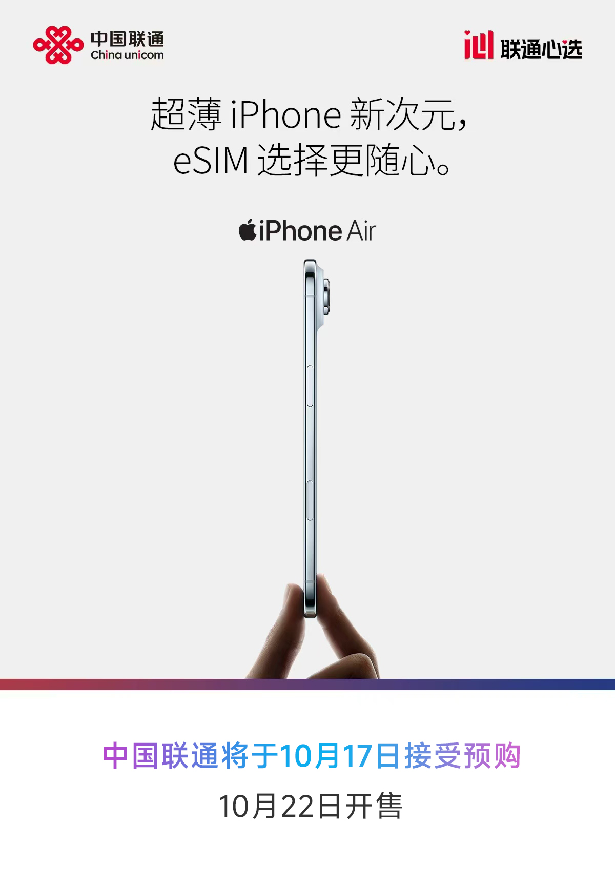 中国联通eSIM业务获批,iPhone Air国行版发售在即