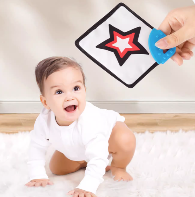 宝宝一出生就拥有看东西的能力,比如,他会看到黑白色,会盯着对比明显,颜色鲜艳的图片看等。这个阶段爸爸妈妈要做的就是,帮助宝宝把「看东西的本领」发扬光大。