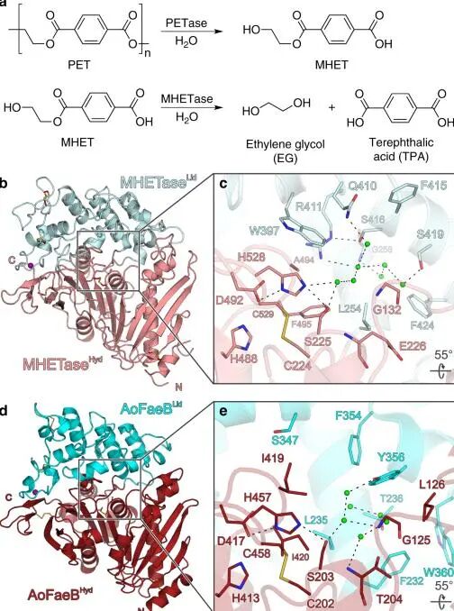 坂井氏菌确实很猛,研究发现它们能直接利用一种名为“水解PET” ( PETase ) 的酶来分解单体之间的键,将较大的分子分解成较小的分子,然后吸收掉。