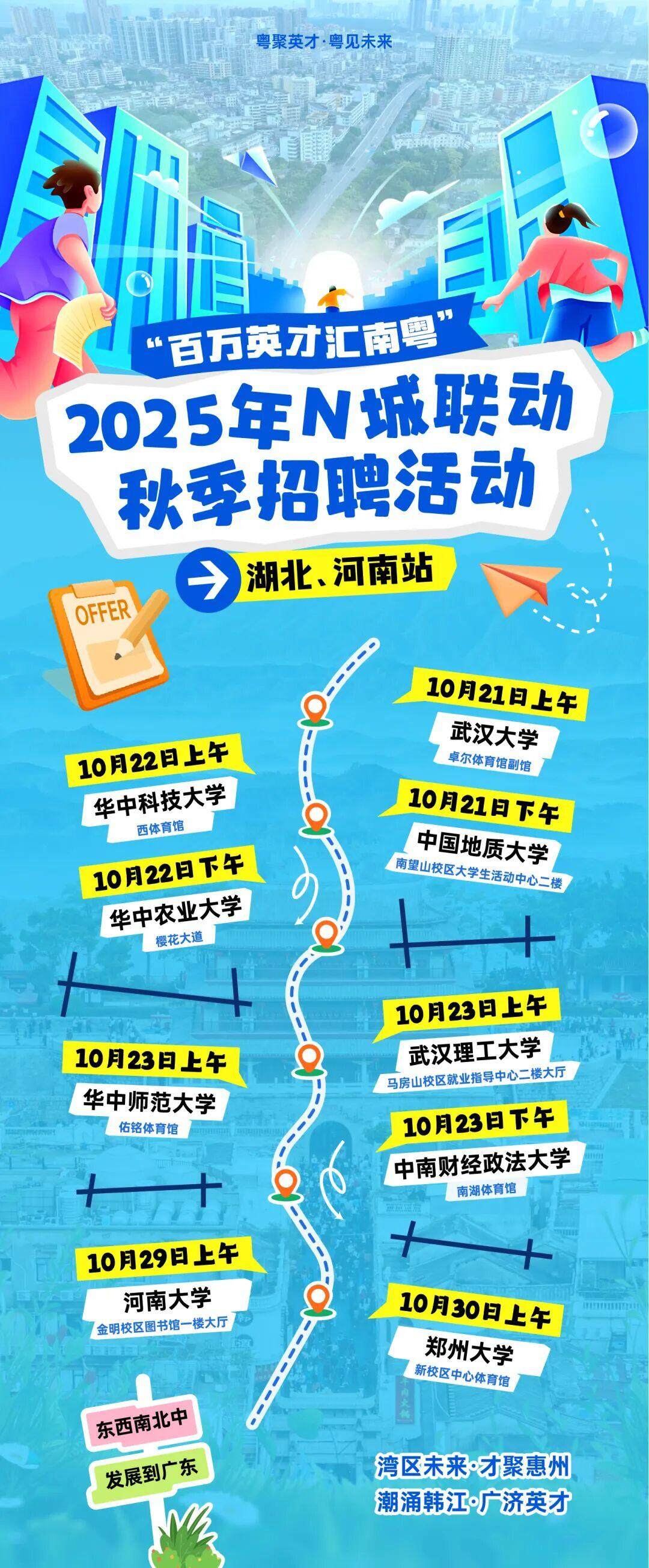 “百万英才汇南粤”2025年N城联动秋季招聘活动(湖北、河南专场)来啦!