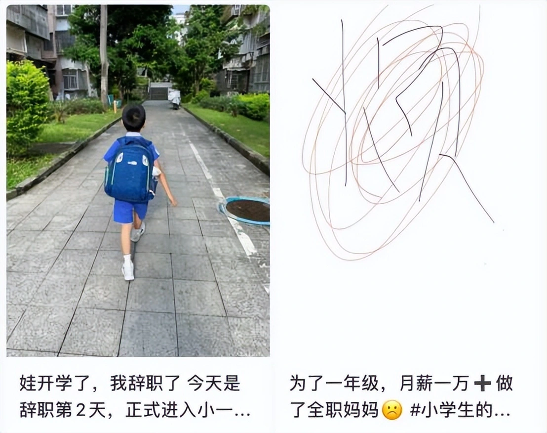 开学快两个月了,一年级新生爸妈们过得还好吗? 最近,有网友表示,自己的朋友圈已经成了家长们的大型“崩溃”现场。 甚至有家长说,自己班里差不多一半的妈妈都辞职了。 消息一出,评论区直接炸了锅,究竟发