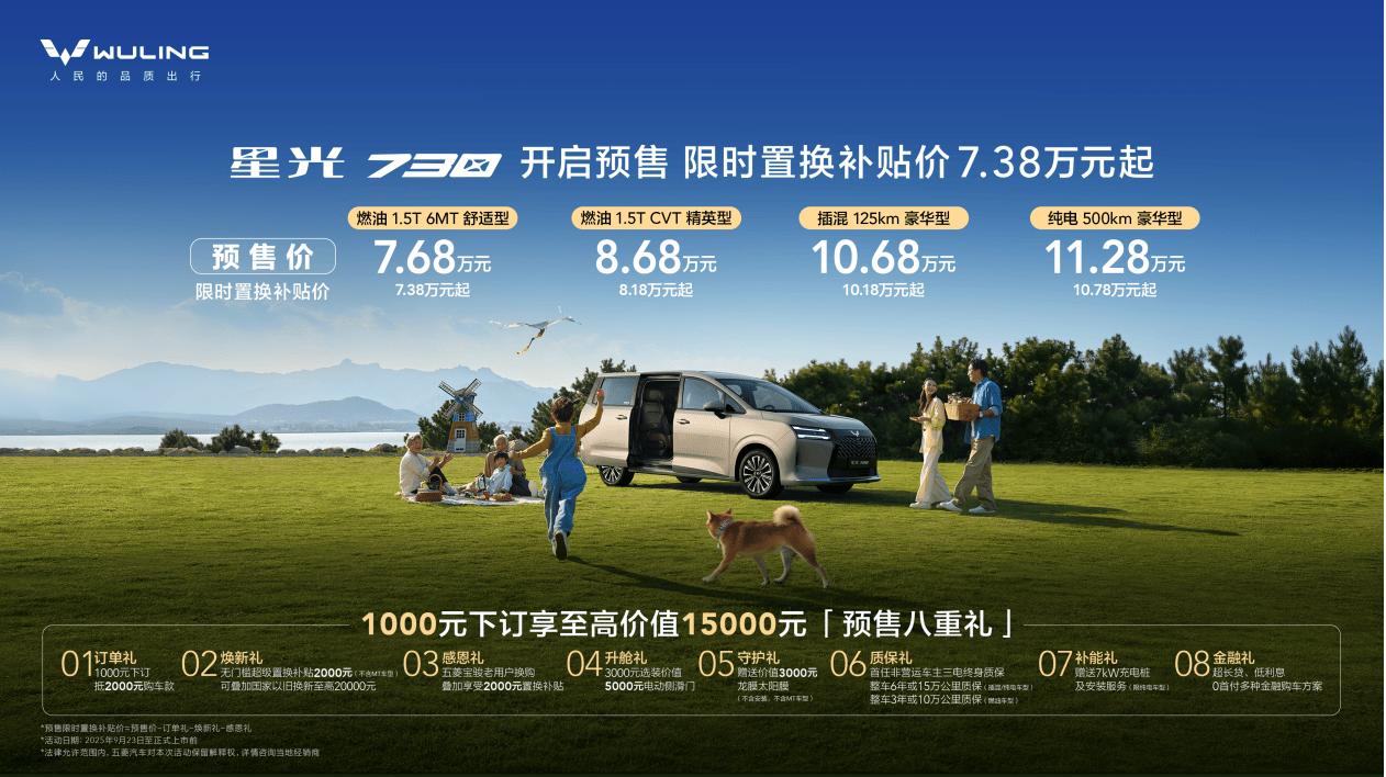 五菱星光730开启预售,7座布局+三种动力,7.68万起售