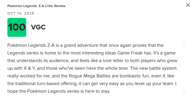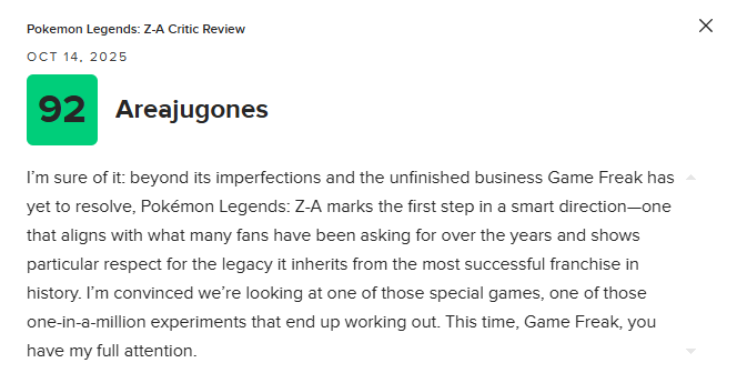 我可以肯定地说:尽管《宝可梦传说 Z-A》并非完美无瑕,仍有一些Game Freak尚未解决的问题,但这部作品无疑迈出了正确的一步——它回应了多年来无数粉丝的期待,也展现出对这款史上最成功系列所承载遗产的由衷敬意。