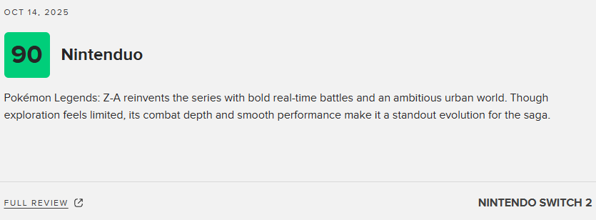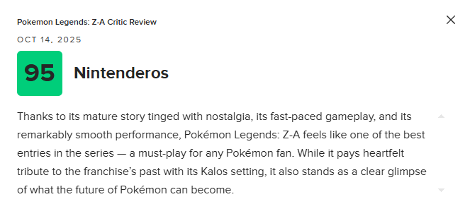 凭借那份带着怀旧色彩的成熟剧情、节奏明快的游戏体验以及出色流畅的性能表现,《宝可梦传说 Z-A》堪称系列中最出色的作品之一——是所有宝可梦粉丝都不容错过的佳作。