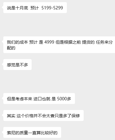 小编还询问了曾经加过的一个电玩店老板,他表示自己也打听到了国行PS5 Pro的消息,说是10月底出,进货成本大概为4999元,在自己店里卖的话预计为5199-5299元。老板还表示国行版的价格不会太香,相比海外版只是多了保修。