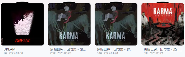 ?《黑暗世界:因与果》(KARMA: THE DARK WORLD (Official Soundtrack)) 可在网易云/ Apple Music / Spotify / Bandcamp 收听 ? EP坠入迷雾(Into The Mist) 同步发行