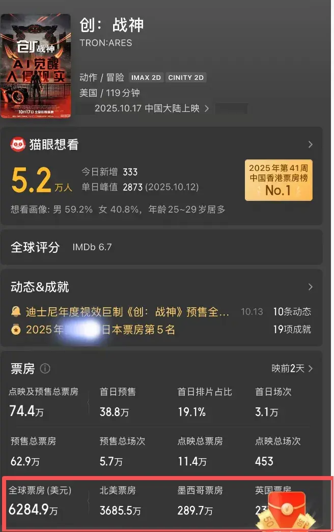 12.8亿打水漂!《创:战神》票房不及预期,迪士尼亏大了