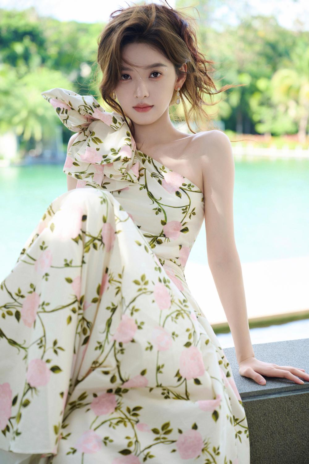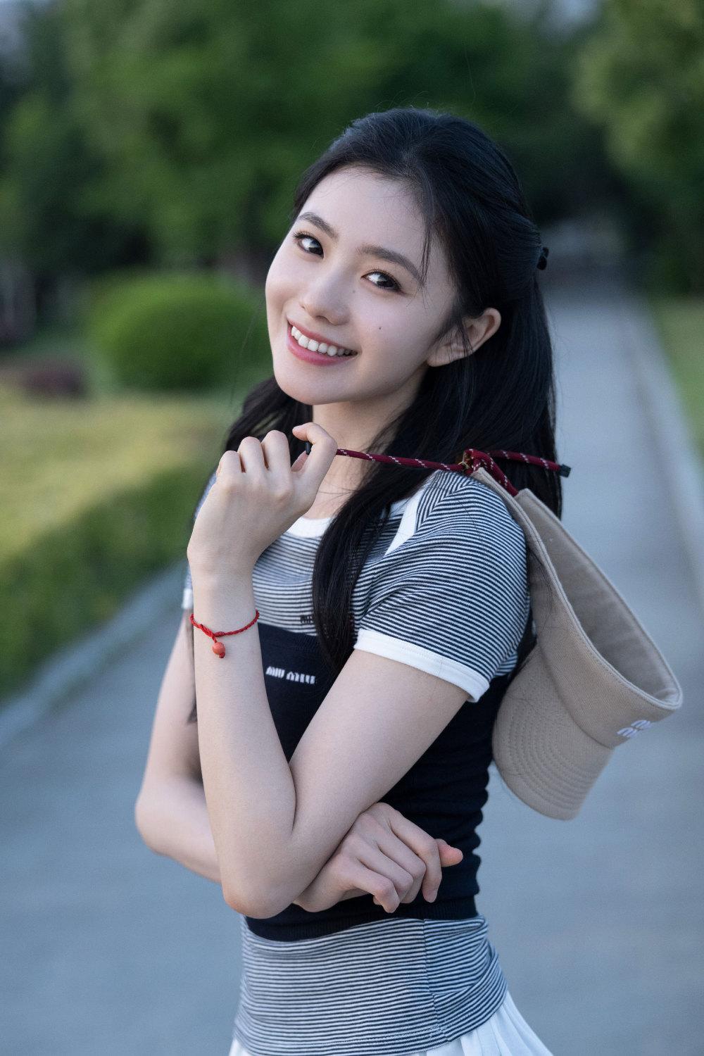 章若楠的面部线条流畅,五官精致却不张扬,既有少女的稚嫩感,又因尖下巴和高鼻梁增添了几分成熟韵味。