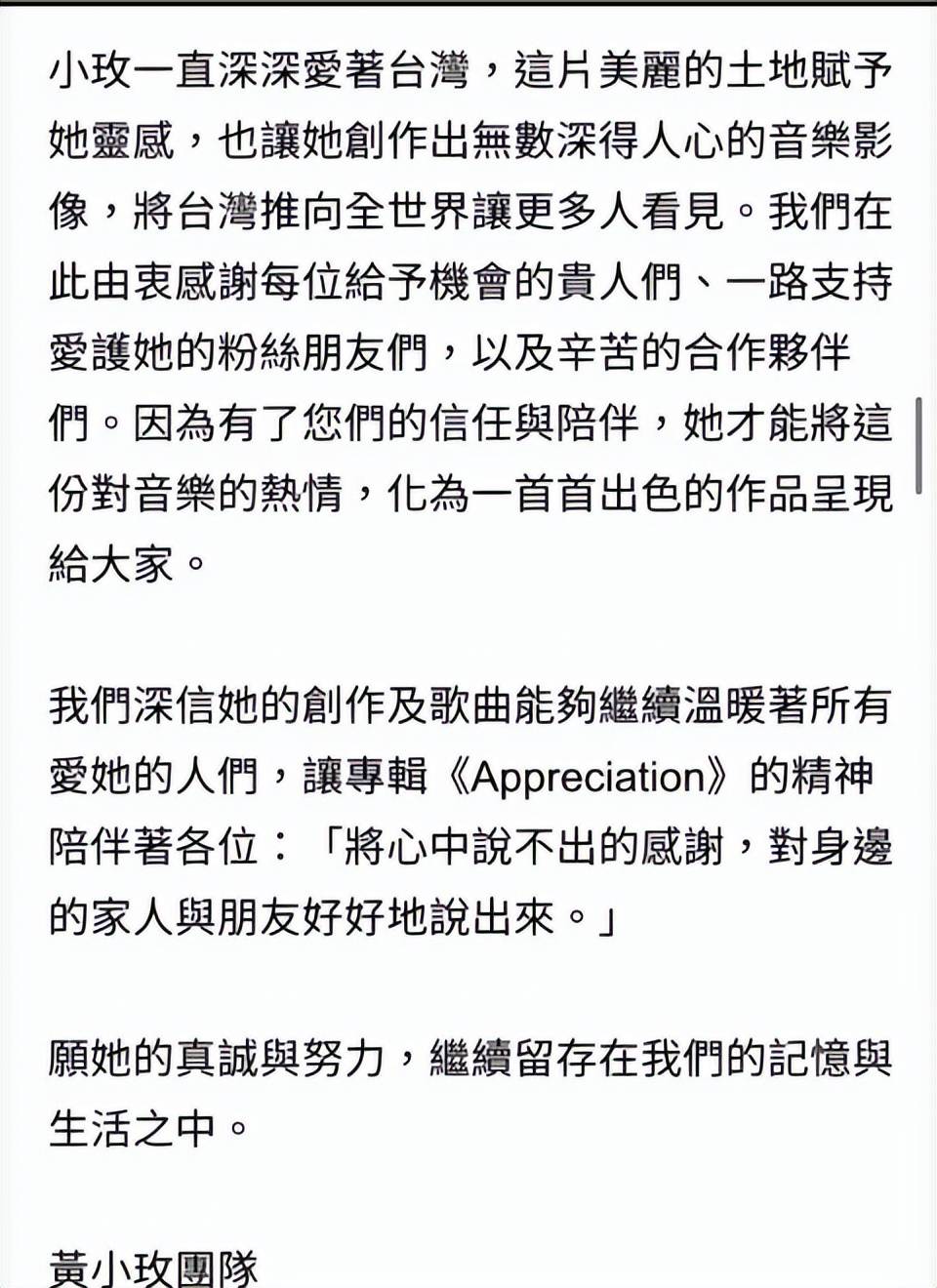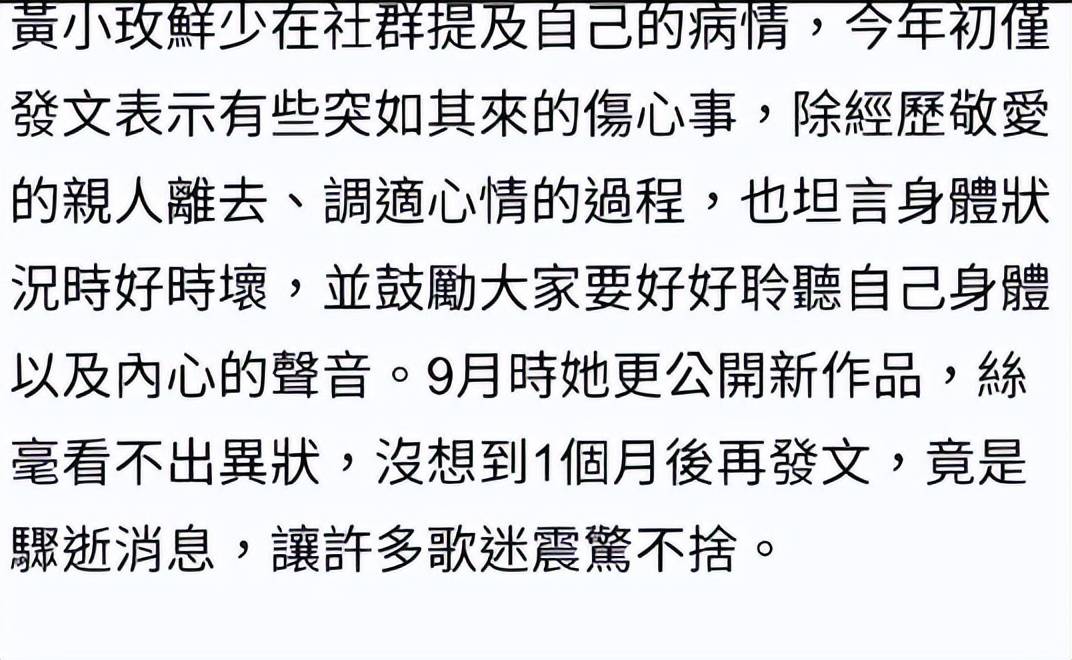34岁美女歌手黄小玫离世,年初刚发首张专辑,团队揭开真实病因