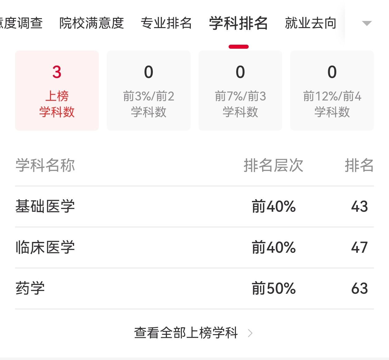 海南医科大学共3个学科上榜,分别是:基础医学、临床医学、药学等学科。